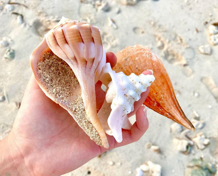 We beach comb all over the world to find the most stunning and unique shells, then we set them in 14k gold and add a vibrant natural gemstone. Each pendant is unique, truly one of one.