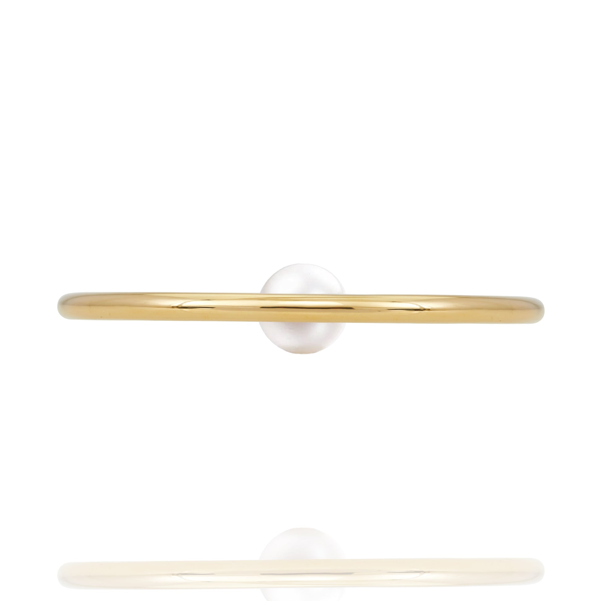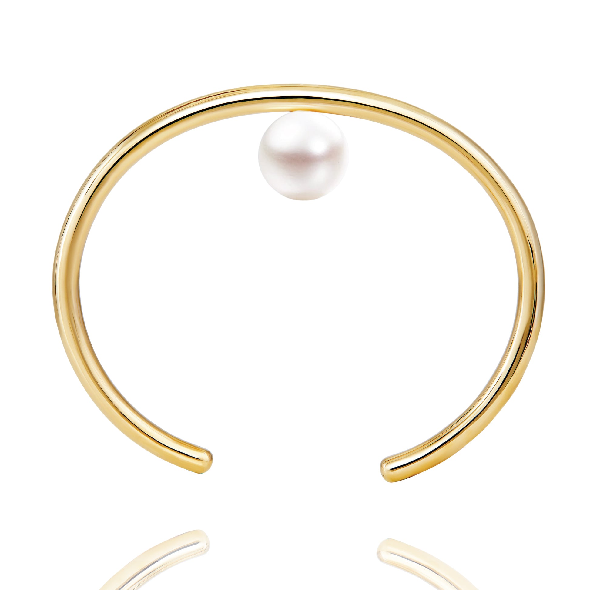 Floating Pearl Cuff is a luxurious fine jewelry piece made of solid 14k gold with 13mm freshwater pearl. Inspired by surrealism, this statement piece is designed to ‘float’ on the wrist, creating a beautiful illusion when worn. Sizing: fits medium to small wrist.