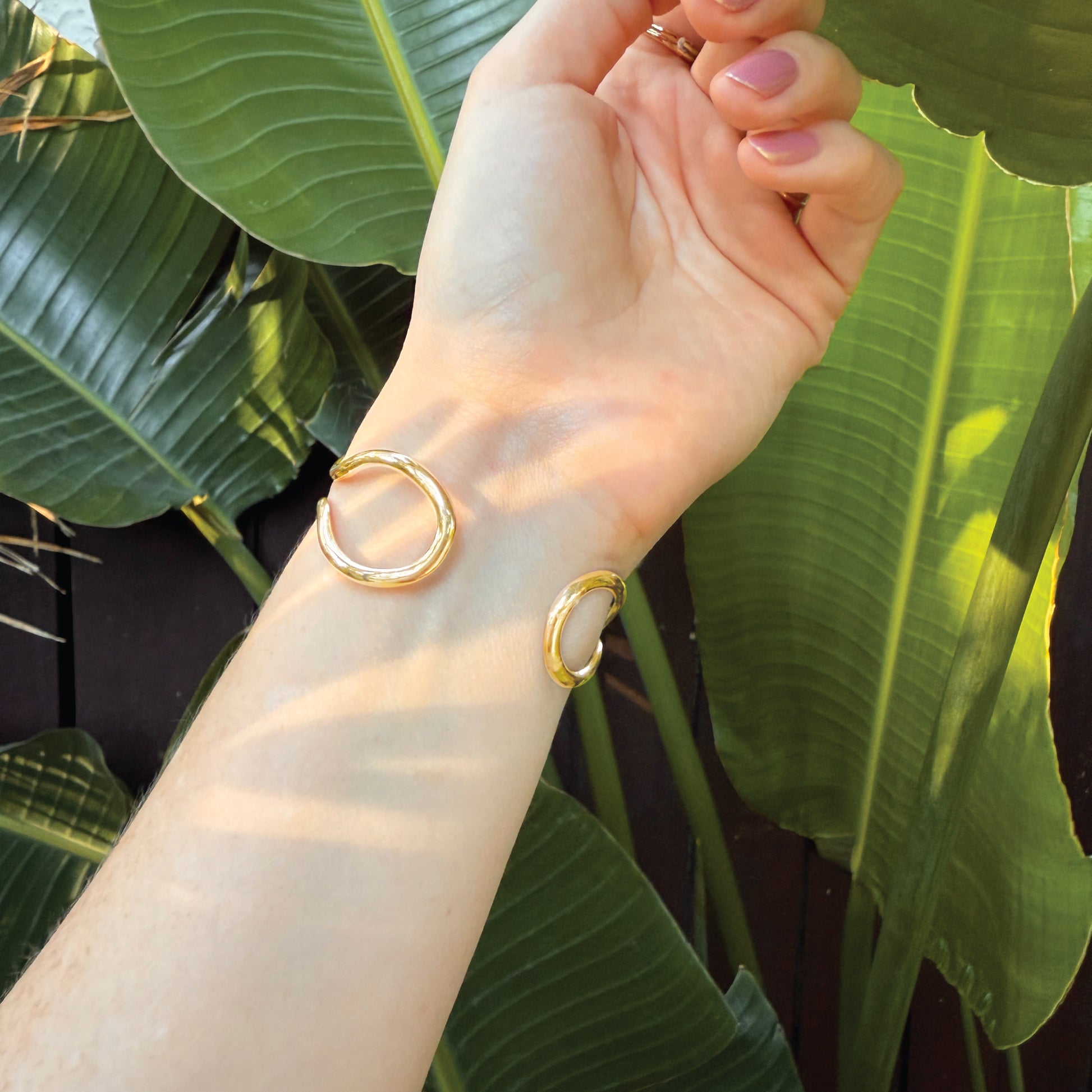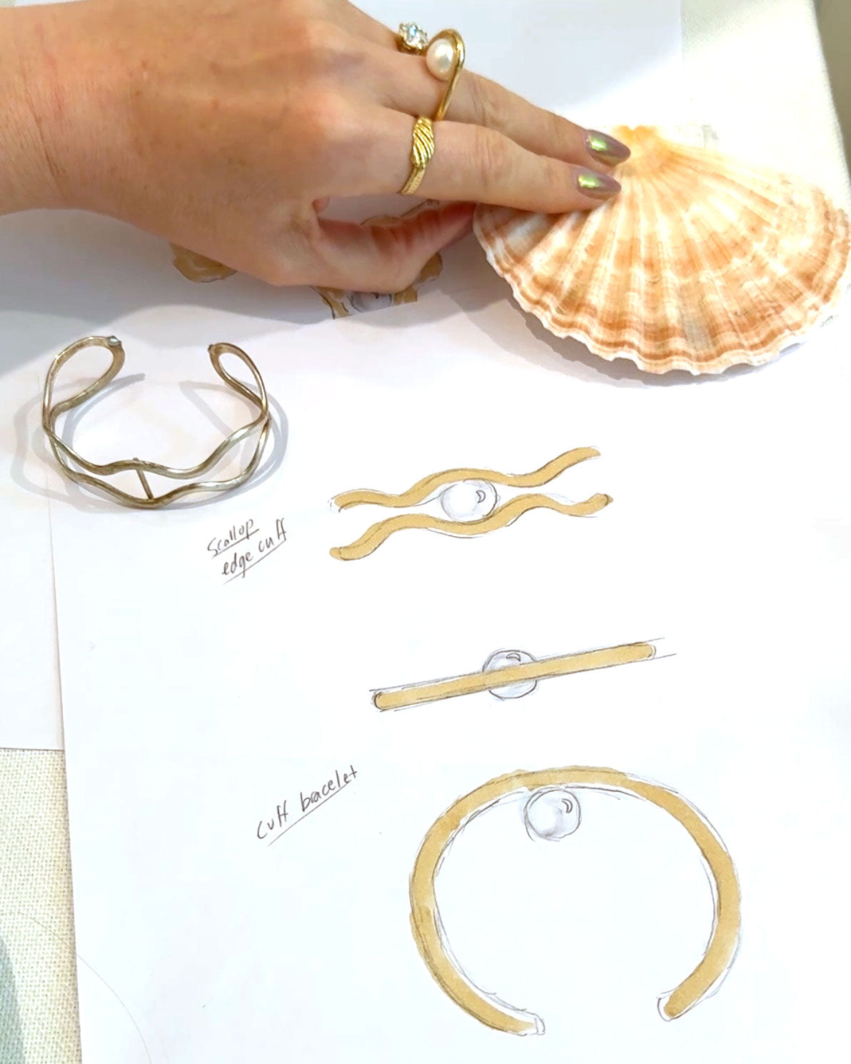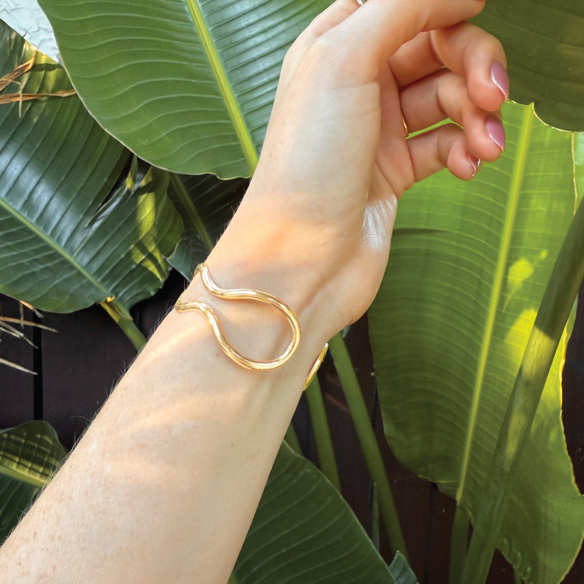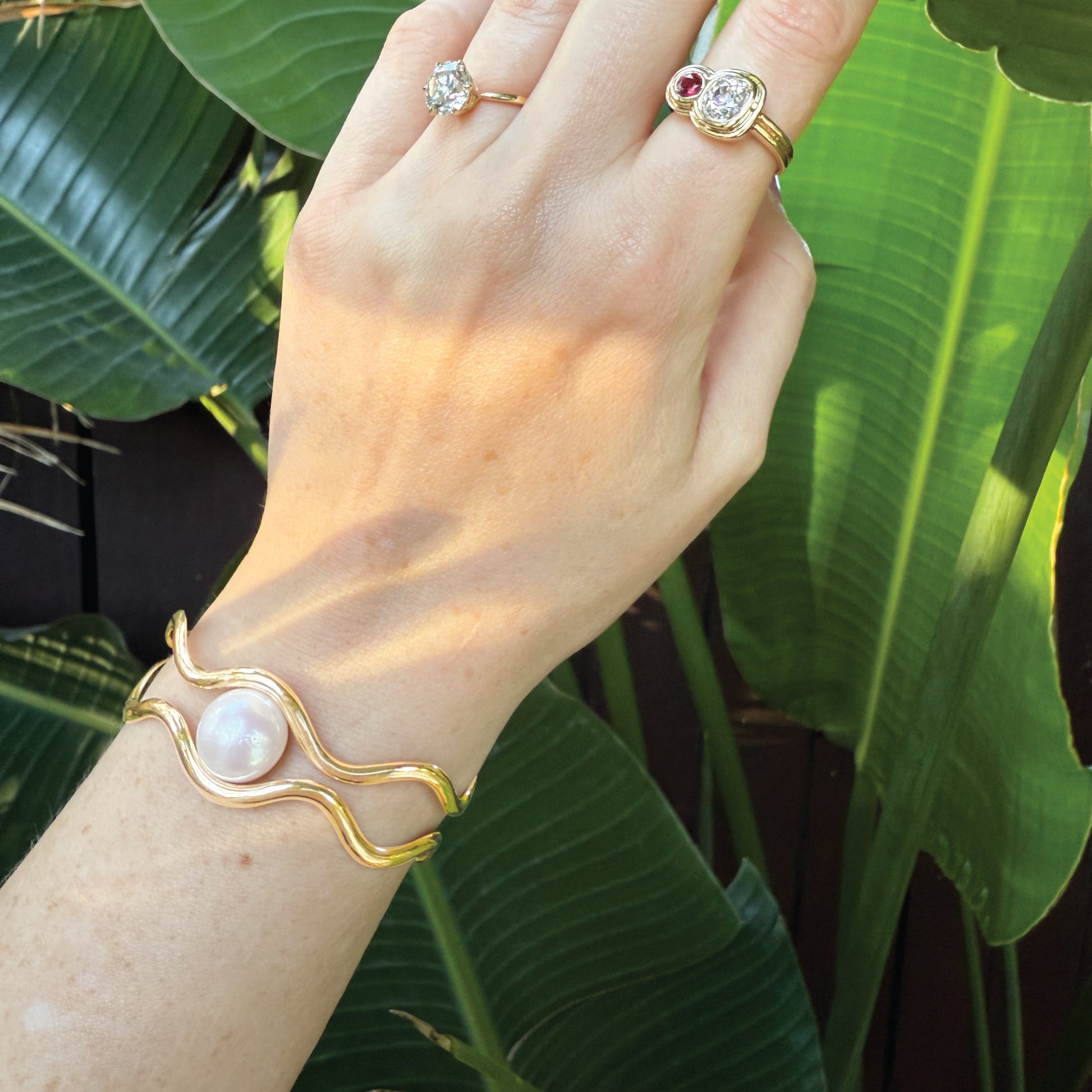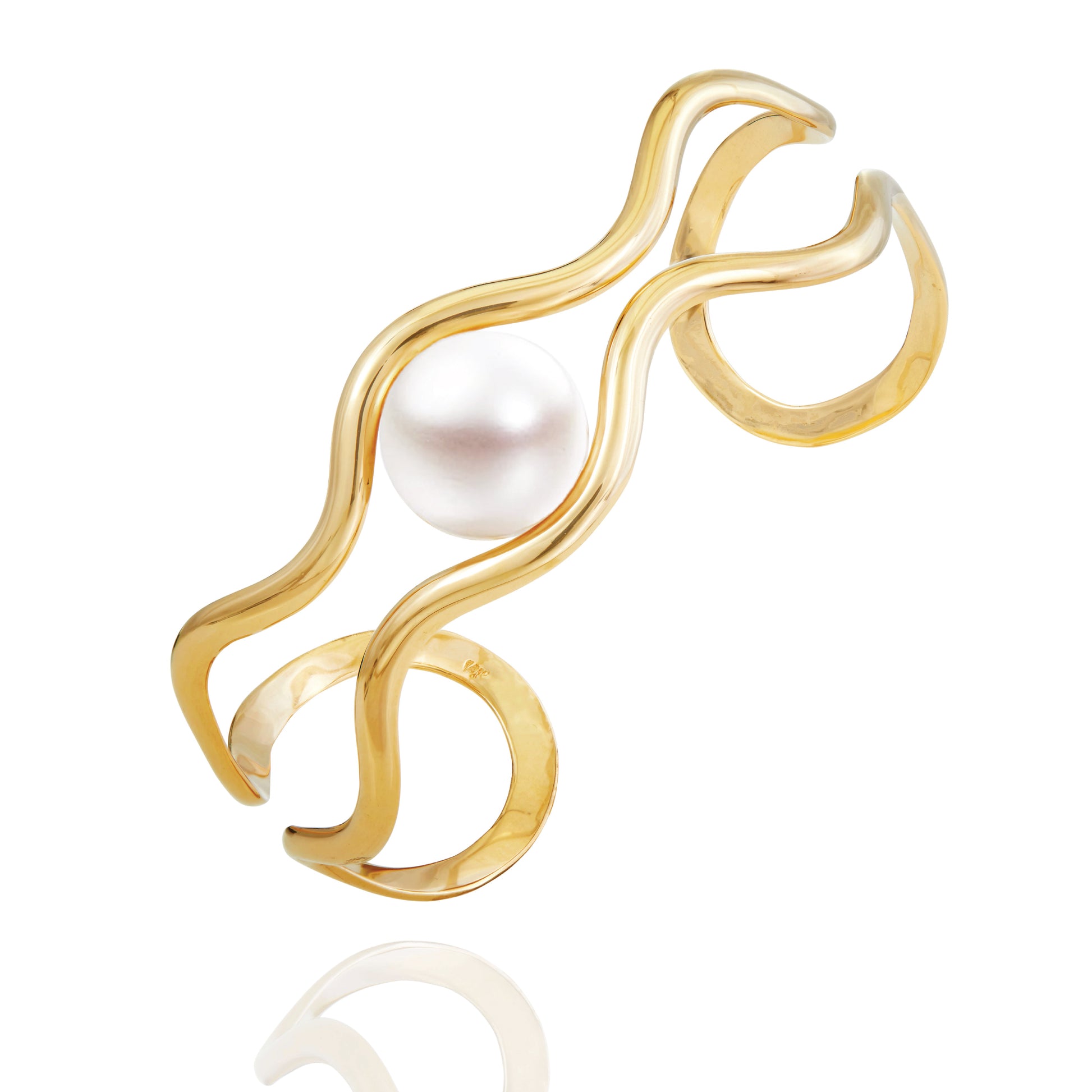 Gala Scallop Cuff is a luxurious fine jewelry piece made of solid 14k gold with 13mm freshwater pearl. This abstract design is inspired by the scallop shape of a shell. Sizing: fits medium to small size wrist.