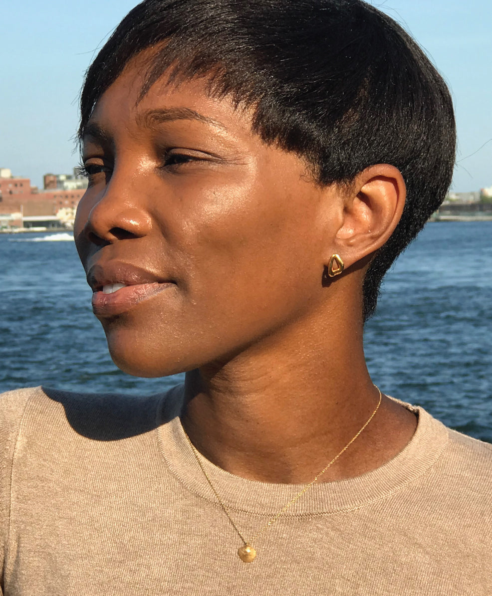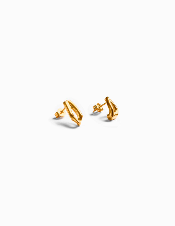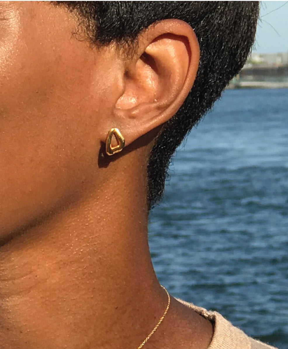 Inspired by two small pieces of naturally formed coral, these shapes were hand picked and designed to be mismatched. Asymmetric yet balanced, they have an almost triangle shape.