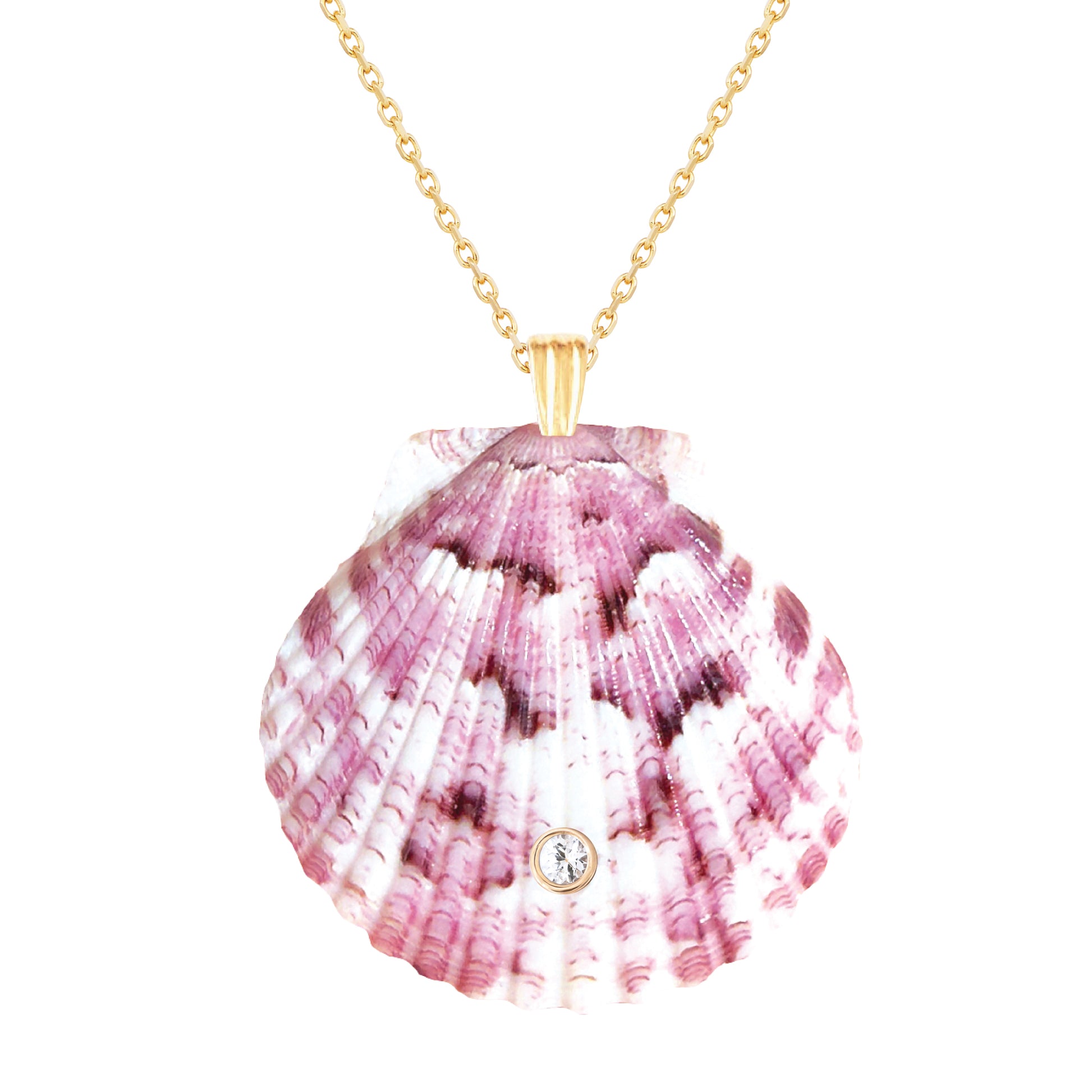 Natural shell pendant with solid 14k gold findings and natural white sapphire gemstone. Wear this pendant alone or style it with other gold chains for a beautiful layered effect.